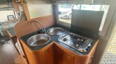 O interior destaca-se pelas duas camas fixas (incluindo cama capucine e cama de armário), cozinha completa com frigorífico e forno, e WC com zona de duche separada, garantindo conforto em estadias curtas ou prolongadas.