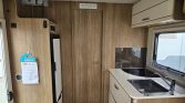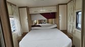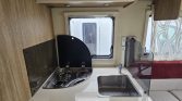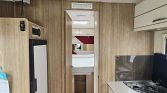 No interior, oferece cama central, cama de teto elétrica, cozinha totalmente equipada, frigorífico de grande capacidade e casa de banho com duche separado, garantindo conforto.